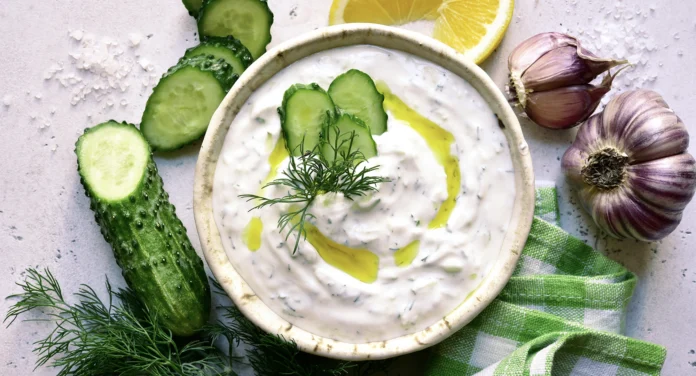 โยเกิร์ตเย็นและครีม tzatziki จุ่ม