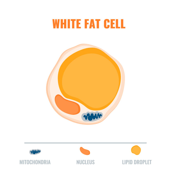 “ เซลล์ไขมันสีขาวเป็นหยดน้ำขนาดใหญ่ที่มีหยดไขมันขนาดใหญ่ (ไขมัน) อยู่ตรงกลางและมีขอบของเครื่องจักรมือถือเล็กน้อย” ก็อดดาร์ดอธิบาย ไขมันสีขาวเป็นประเภทที่ส่วนใหญ่ให้การจัดเก็บพลังงานส่วนเกิน