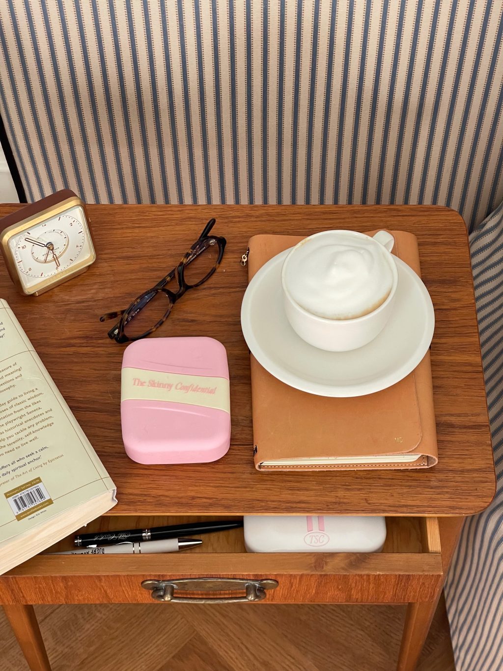 มันเป็นช็อตของเอสเพรสโซ่เดียวกับนมโฟม ฉันรู้ว่าพวกเขาบอกว่าจะรอคาเฟอีน แต่สำหรับฉันสิ่งนี้ได้ผล ในขณะที่ฉันจิบมันฉันอ่านหนึ่งหน้าจาก Stoic ประจำวัน– พ่อของฉันได้รับมันสำหรับฉันสองคริสต์มาสที่ผ่านมาและฉันอ่านอีกครั้งทุกปี