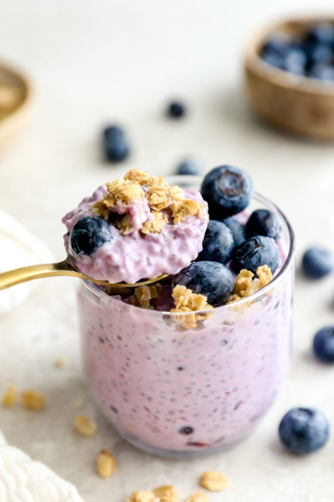 ปีการศึกษากำลังแกว่งอย่างเต็มรูปแบบและพร้อมกับการเรียนกลับมาตอนเช้า ไม่มีใครชอบที่จะรู้สึกรีบเร่งในตอนเช้าดังนั้นฉันจึงมองหาวิธีที่จะปรับปรุงตอนเช้าของเราอย่างต่อเนื่องเพื่อให้พวกเขาเร่งรีบและวุ่นวายน้อยลงและผ่อนคลายมากขึ้น สิ่งหนึ่งที่ช่วยในวิธีการที่สำคัญคือการเตรียมอาหารเช้าเมื่อคืนก่อน (ฉันเขียนโพสต์บล็อกทั้งหมดเกี่ยวกับเรื่องนี้หากคุณต้องการตรวจสอบที่นี่: สูตรเตรียมอาหารเช้า.) Chia Pudding เป็นหนึ่งในสูตรอาหารเช้าที่เตรียมไว้ล่วงหน้าที่ฉันทำซ้ำเพราะมันง่ายอย่างไม่น่าเชื่อ แต่ก็เป็นเพราะมันมีสารอาหารหนาแน่นเต็มไปด้วยโปรตีนและเส้นใยที่อิ่มตัว สูตรพุดดิ้งบลูเบอร์รี่ Chia นี้เป็นสูตรที่ฉันทำซ้ำแล้วซ้ำอีกเพราะฉันมักจะมีส่วนผสมจำนวน จำกัด ที่จำเป็นในการโยนสูตรนี้เข้าด้วยกัน