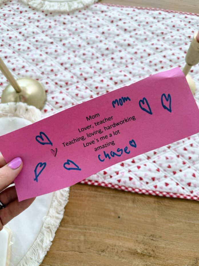 โรงเรียนเด็กใหญ่ของเรามีประเพณีที่พวกเขาทำบทกวีสั้น ๆ สำหรับเด็กแต่ละคนในชั้นเรียนของพวกเขาแทนที่จะเป็นวาเลนไทน์แบบดั้งเดิม (พวกเขามีเวลามากกว่าหนึ่งเดือนในการทำงานกับพวกเขา) และมันน่ารักมากที่ได้อ่านภาพรวมเล็ก ๆ น้อย ๆ เกี่ยวกับวิธีการดูเพื่อนร่วมชั้นของพวกเขา พวกเขาที่โรงเรียน เชสก็หวานมากและทำตามรูปแบบวันวาเลนไทน์ของเขาเพื่อสร้างวาเลนไทน์ให้ฉันและไรอันเช่นกัน