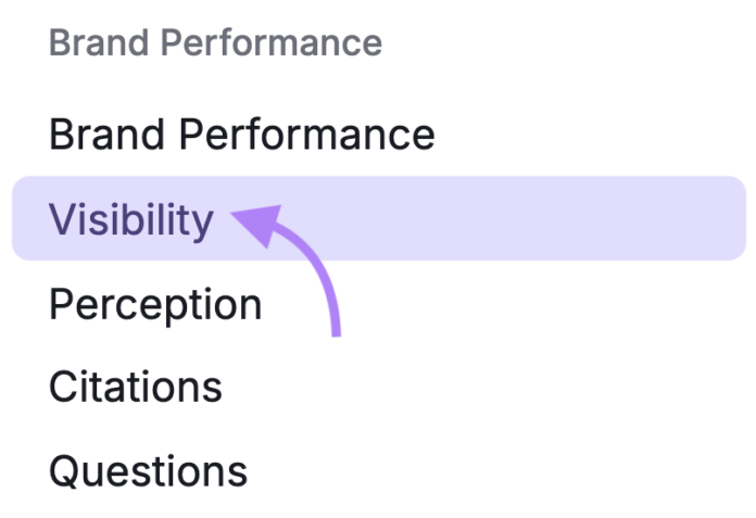 ในการทำเช่นนี้ให้เปิดไฟล์ ชุดเครื่องมือ SEMRUSH AI website positioning และนำทางไปยัง“การมองเห็น” รายงาน.