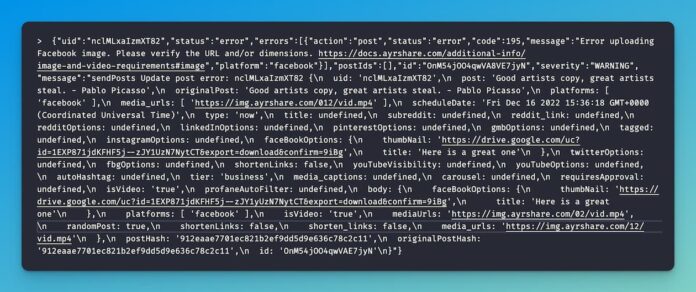 Ayrshare เป็น โซเชียลมีเดีย API ที่ช่วยให้คุณเผยแพร่โพสต์รับการวิเคราะห์จัดการความคิดเห็นและส่งข้อความโดยตรงบนเครือข่ายสังคมออนไลน์โดยตรงจากแพลตฟอร์มของคุณ เรียนรู้เพิ่มเติมใน เอกสาร API โซเชียลมีเดีย–