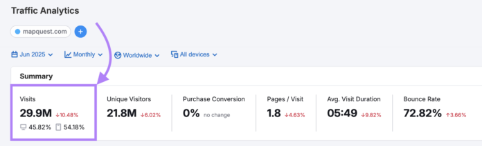 ตาม Semrush การวิเคราะห์การจราจร เครื่องมือเว็บไซต์ของ MapQuest ดึงดูดการเข้าชม 29.9 ล้านครั้งในแต่ละเดือน – พิสูจน์ได้ว่ามีผู้ชมที่วัดได้ที่คุณสามารถเข้าถึงได้