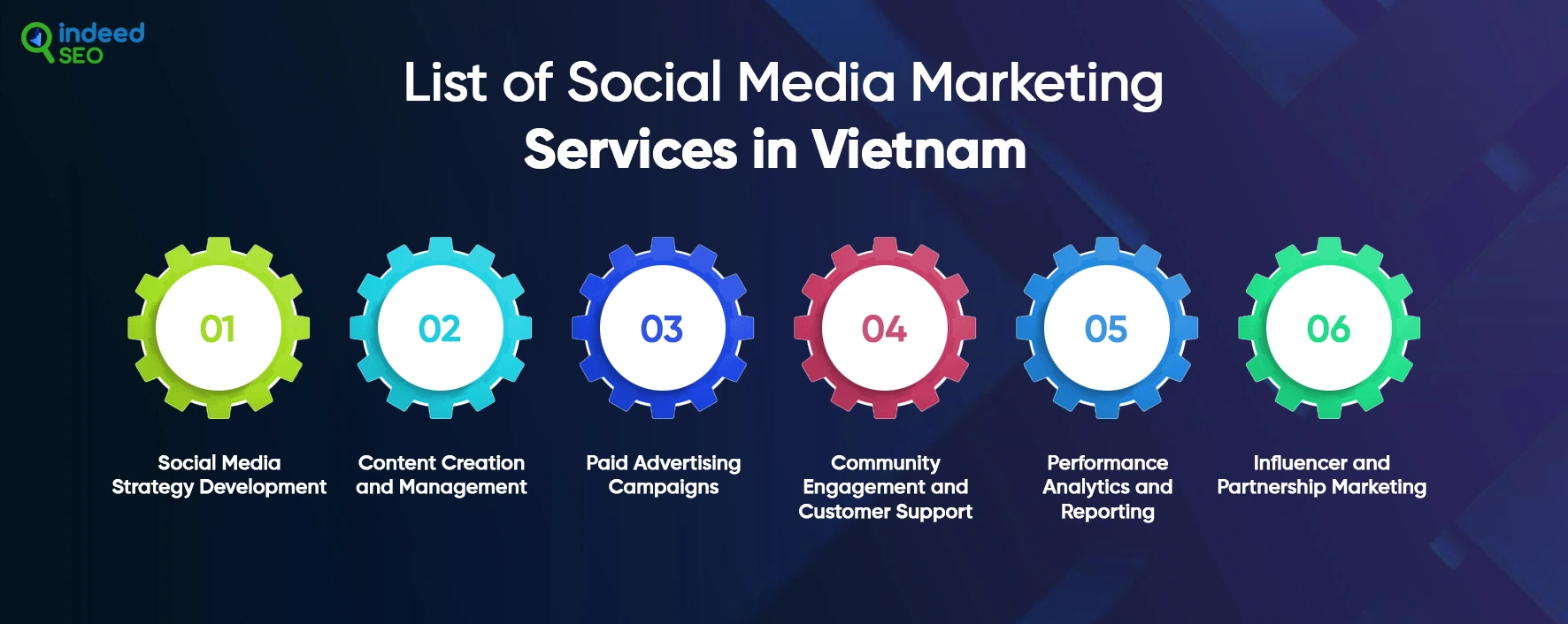 หน่วยงานการตลาดโซเชียลมีเดียในเวียดนามให้บริการที่หลากหลายเพื่อส่งเสริมสถานะออนไลน์และการพัฒนาธุรกิจ บริการเหล่านี้ช่วยให้ธุรกิจต่างๆในการจัดระเบียบกระบวนการทางการตลาดของพวกเขาในขณะที่ขยายการเข้าถึงผู้ชม เอเจนซี่ที่มีชื่อเสียงเสนอบริการพื้นฐานหกประการ:
