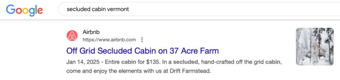 รายชื่อ Airbnb ปรากฏใน Google ค้นหาคำว่า Cabin Vermont ที่เงียบสงบ