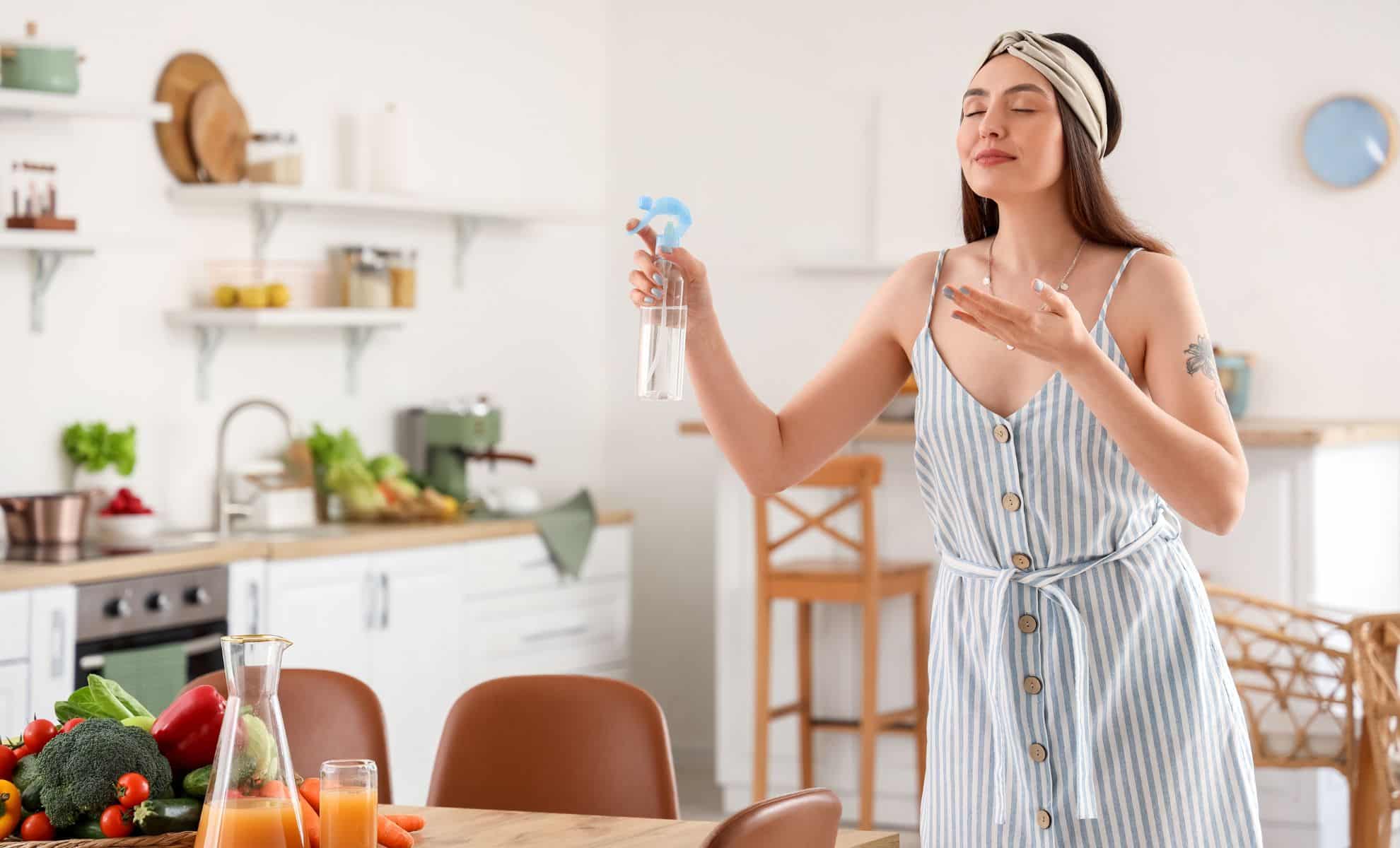 สเปรย์ที่ใช้น้ำส้มสายชูเป็นอีกวิธีหนึ่งที่ได้รับการพิสูจน์แล้ว ผสมน้ำส้มสายชูสีขาวกับน้ำและน้ำมันหอมระเหยไม่กี่หยด ยาดับกลิ่นอันทรงพลัง มีประสิทธิภาพโดยเฉพาะอย่างยิ่งในครัวและผ้า