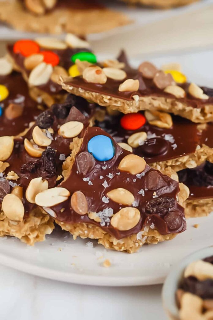 • ปรับแต่งได้ง่าย: สูตรนี้เกิดขึ้นเมื่อเรามีมอนสเตอร์เทรลผสมเล็กน้อยและอยากทำอะไรสนุก ๆ กับมัน! มีโรยเพิ่มเติม? สนุก! มีขนมฮัลโลวีนที่จะใช้หรือไม่? ลูกอมขนาดเล็กหรือสับแท่งขนมจะน่ารักมากที่ด้านบนของเปลือกไม้นี้