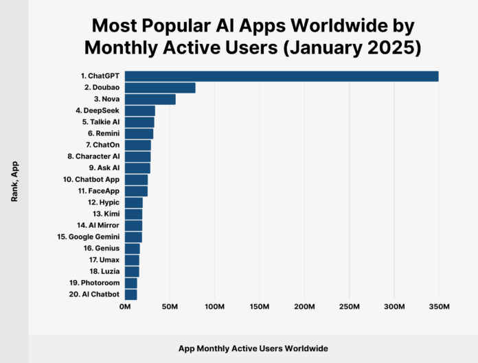 แอพ AI ที่ได้รับความนิยมมากที่สุดทั่วโลกโดยผู้ใช้งานรายเดือน (มกราคม 2025)