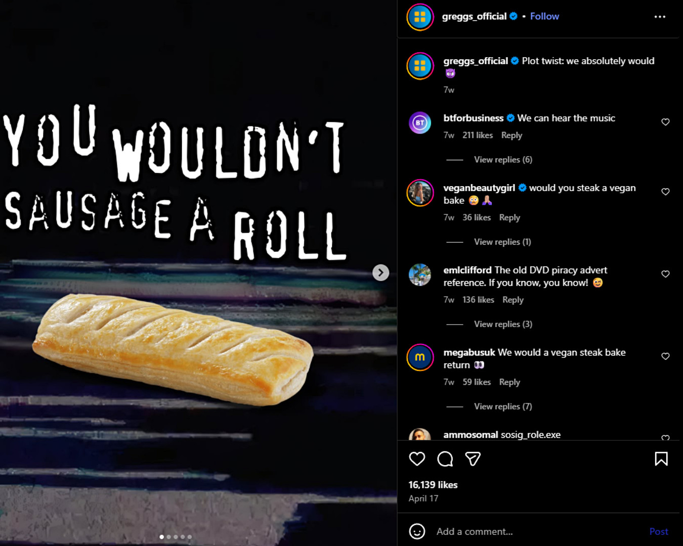 ตัวอย่างโลกจริง: Greggs รู้จักกันมานานแล้วว่ากลุ่มเป้าหมายของมันชื่นชมอารมณ์ขันที่ไม่เคารพและตระหนักถึงตนเองและมันก็โน้มตัวเข้ามาอย่างต่อเนื่อง ไม่ว่าจะเป็นการแบ่งปันมส์ที่กำหนดเองที่เข้าสู่ความคิดถึงต้นปี 2000 หรือเปลี่ยนคำย่อทางสังคมทั่วไปเช่น GTG (ไปที่ Greggs) แบรนด์เชื่อมต่อกับผู้ชมผ่านเนื้อหาที่พวกเขาชื่นชม