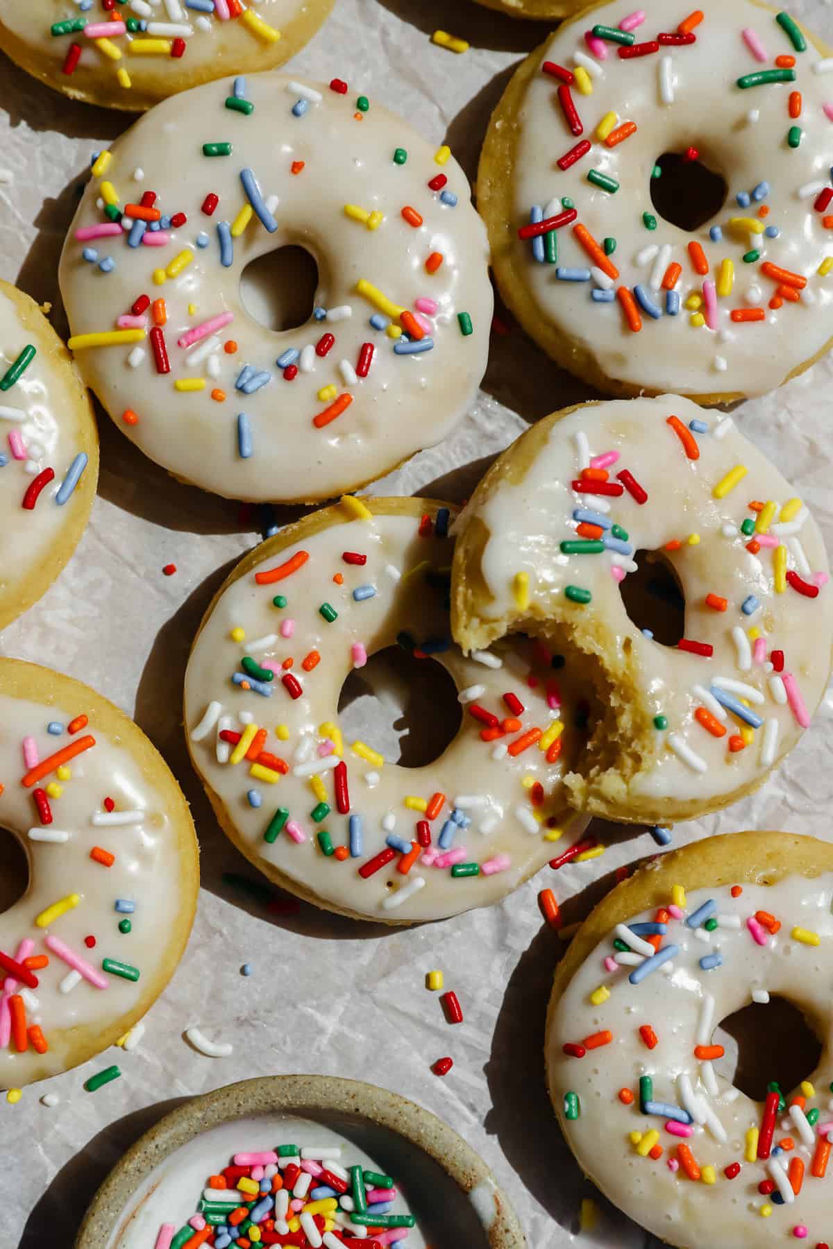 สิ่งหนึ่งที่ฉันชอบอย่างมากเกี่ยวกับโดนัทเหล่านี้คือความเก่งกาจในการใช้ท็อปปิ้งที่แตกต่างกัน! เวลาส่วนใหญ่ฉันกำลังเคลือบและโรยครึ่งหนึ่งของแบทช์แล้วโยนอีกครึ่งหนึ่งในการเติมน้ำตาลอบเชย