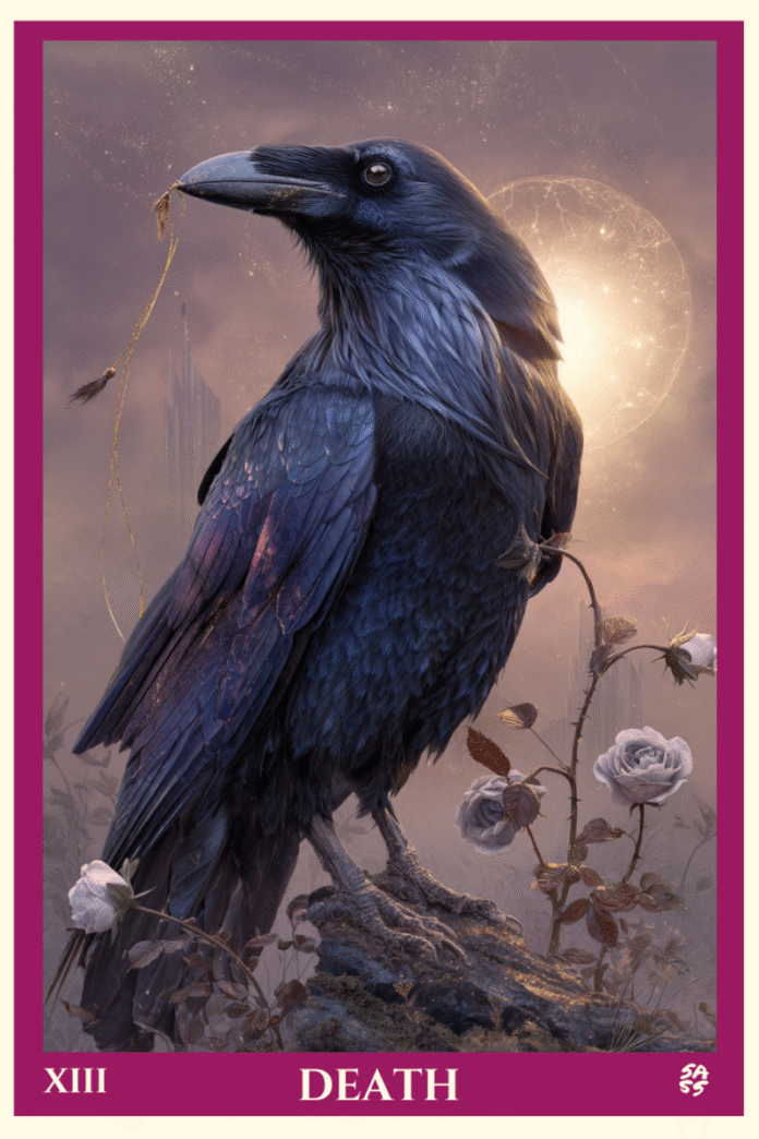 ไพ่ทาโรต์ในสัปดาห์นี้คือ ความตายเป็นตัวเป็นตนในภาพของกาเรืองแสงที่เกาะอยู่ท่ามกลางดอกกุหลาบสีซีดและหมอกทไวไลท์ ด้ายของ Gold Glimmers จากปากนกของมันเป็นสัญลักษณ์ของการลัดผูกที่ละเอียดอ่อนระหว่างตอนจบและจุดเริ่มต้น ข้างหลังดวงอาทิตย์ขึ้นเหนือหอคอยที่ห่างไกลเตือนเราว่าทุกบทปิดจะให้แสงสว่างของสิ่งต่อไป