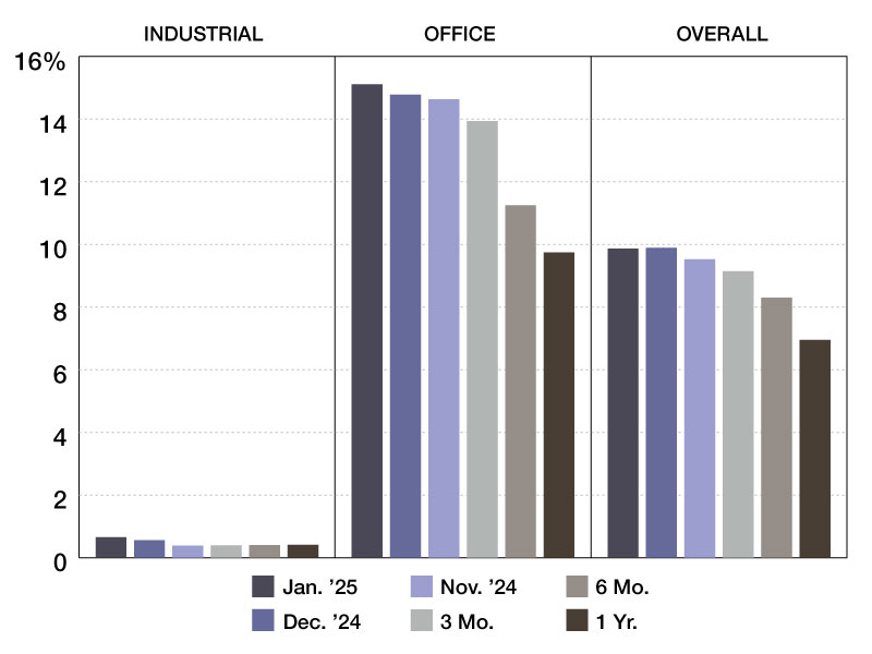 อัตราการให้บริการพิเศษ Trepp CMBS ดึงกลับ 2 คะแนนเป็น 9.87 เปอร์เซ็นต์ในเดือนมกราคม 2568 นี่เป็นการลดลงครั้งแรกในอัตรารายเดือนนับตั้งแต่เดือนธันวาคม 2566