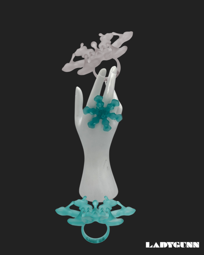 Hihonestly การออกแบบที่มาจากความตั้งใจ ในตอนแรกมันเริ่มต้นเป็นรูปดอกไม้และฉันก็เล่นกับมันมากพยายามที่จะให้รูปแบบบางอย่างกับ blob อสัณฐานนี้บนหน้าจอ iPad ของฉันและฉันต้องผ่านสภาวะการสะกดจิตที่สร้างสรรค์แบบนี้ที่ฉันไม่ได้คิดถึงสิ่งที่ฉันกำลังทำและฉันแค่ออกแบบและสร้างมือและดวงตาของฉัน ฉันชอบรูปร่างของการออกแบบที่ฉันคิดขึ้นมาและสำหรับฉันมันดูเหมือนเกล็ดหิมะมากกว่าดอกไม้ ณ จุดนั้นดังนั้นฉันจึงขนานนามว่าแหวนเกล็ดหิมะ มันเป็นฤดูหนาวเมื่อฉันเดบิวต์แหวนเหล่านี้ดังนั้นมันจึงรู้สึกเหมาะสมในเวลานั้น เมื่อหนึ่งใน colorways ขายหมดที่ร้านขายยาค้าปลีกฉันไม่อยากจะเชื่อเลย ฉันไม่มีความคาดหวังและเป็นกังวลอย่างแท้จริงไม่มีใครขาย เมื่อมีใครทำฉันมีความสุข รู้สึกดีที่ได้รู้จักผู้คนอย่างการออกแบบของฉันและพบว่าพวกเขาสวยงามพอที่จะสวมใส่และคุ้มค่ากับจุดราคา