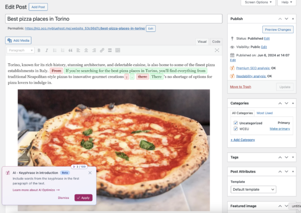 คุณทำสำเนาเสร็จแล้ว! แต่ไฟการวิเคราะห์ search engine marketing Yoast search engine marketing ที่น่ารำคาญนั้นไม่ได้เป็นสีเขียวทั้งหมดและคุณต้องทำการเปลี่ยนแปลงด้วยตนเอง นั่นคือสิ่งที่ Yoast Ai Optimize เข้ามาด้วย Yoast Web optimization Premiumตอนนี้คุณจะได้รับ คำแนะนำที่ขับเคลื่อนด้วย AI ในบรรณาธิการคลาสสิกของคุณเพื่อช่วยปรับแต่งเนื้อหาของคุณ